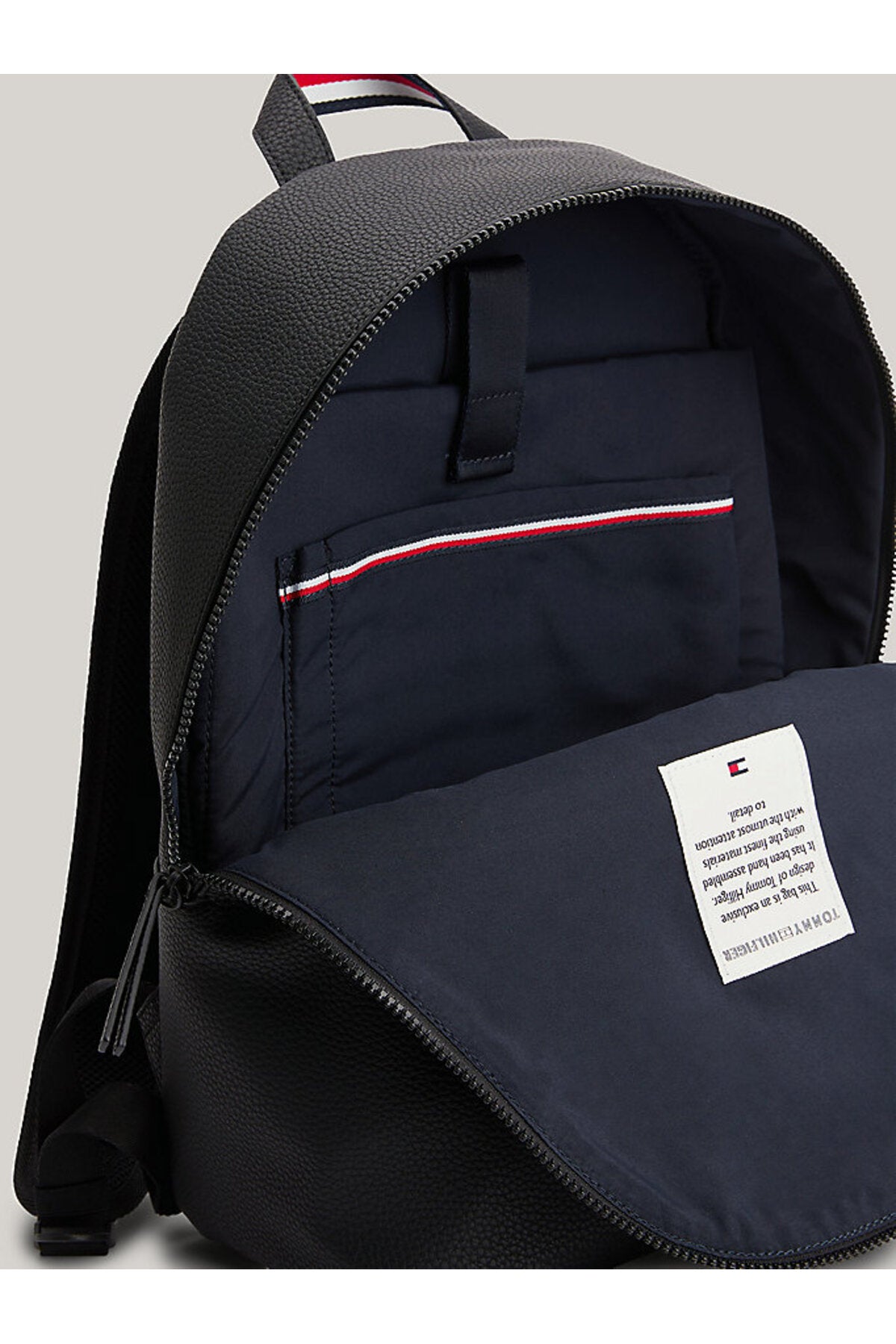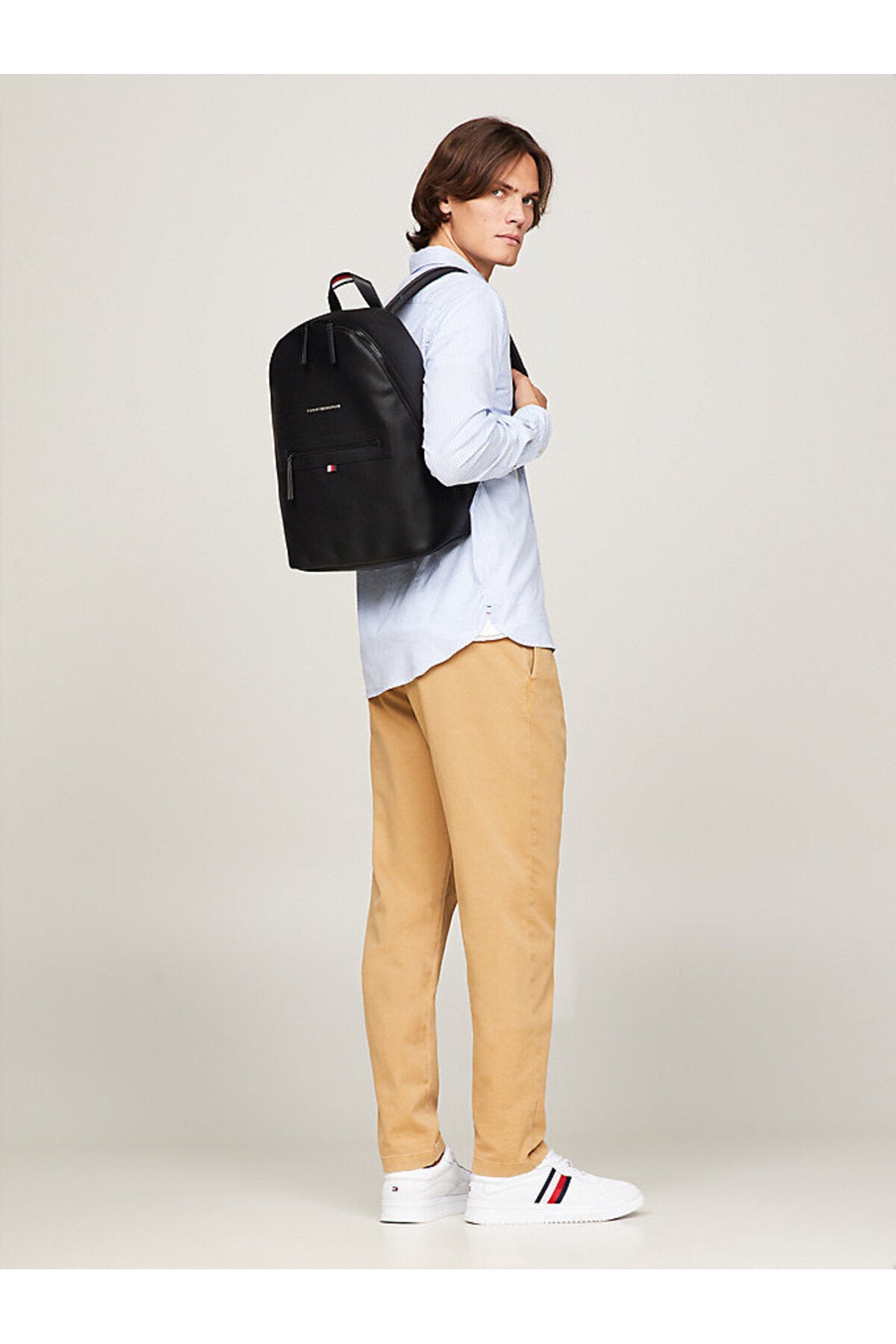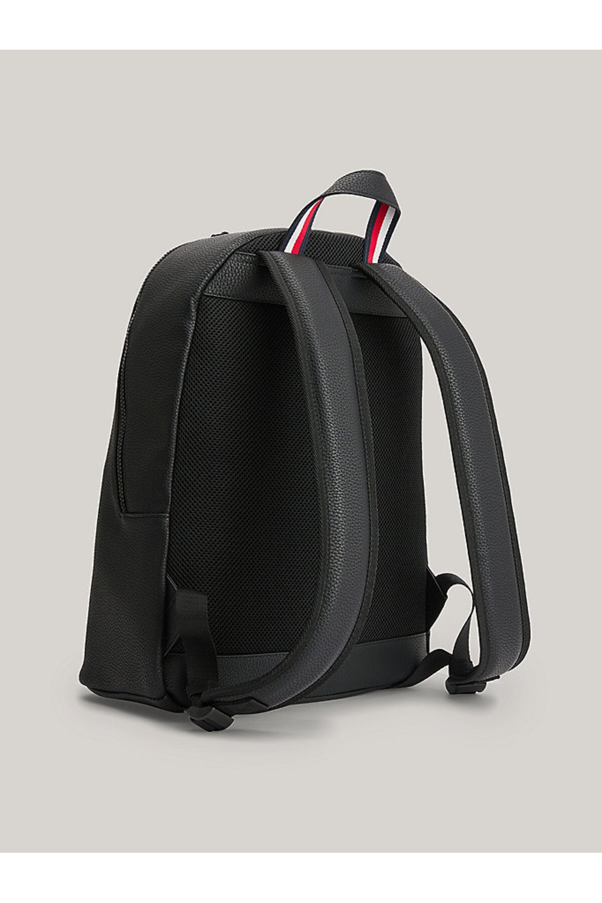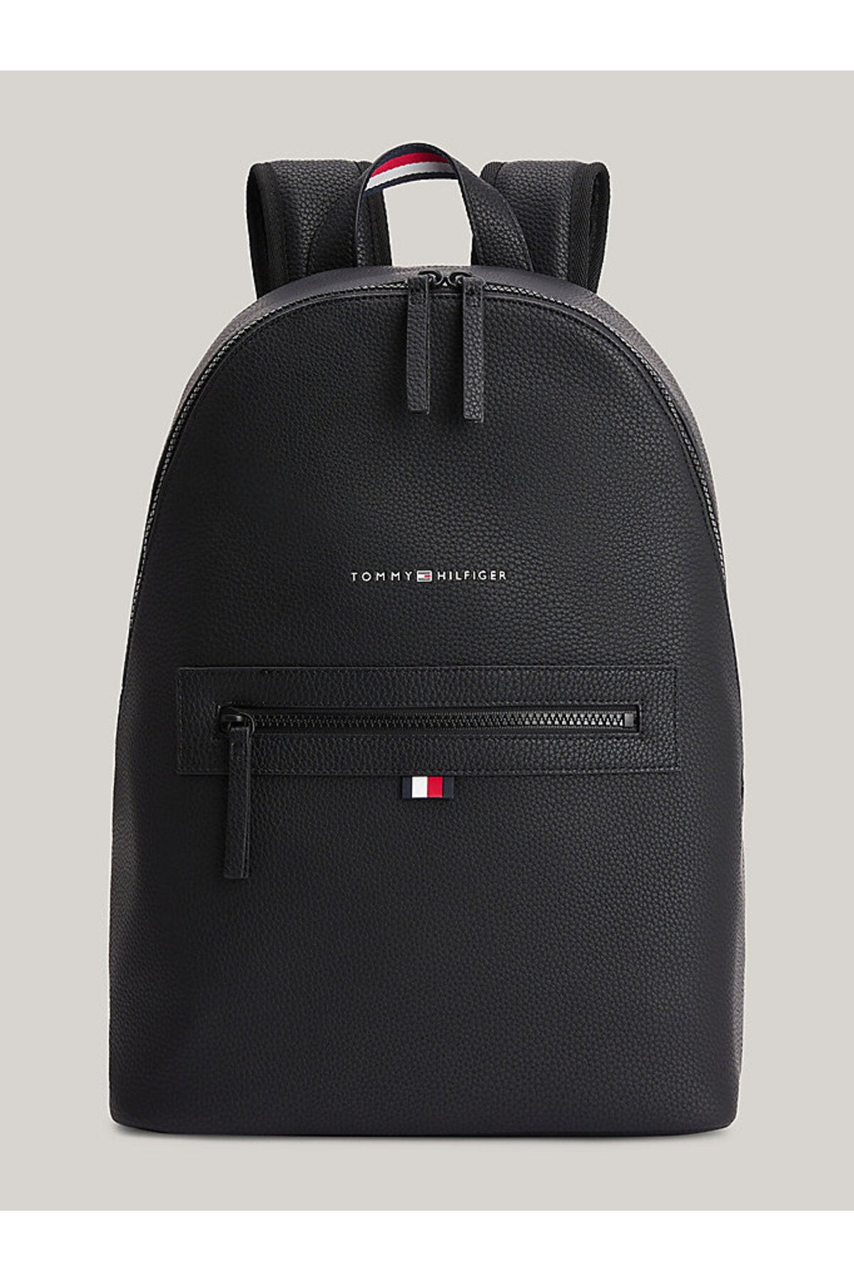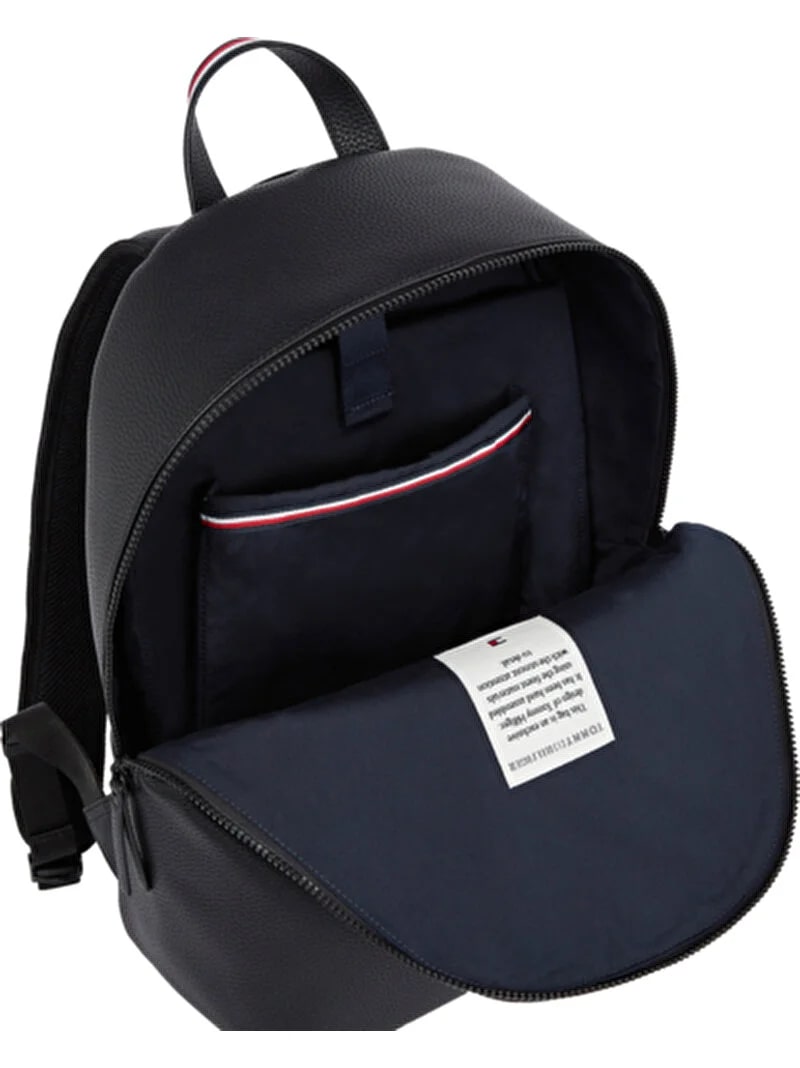 Bu sırt çantasının sade hatları ve minimalist tasarımı onu çok yönlü kılarken, çakıl taşlı yüzeyi de dokunsal bir görünüm katıyor.; Ürün Özellikleri • Çakıl taneli yüzey • Çift fermuarlı • Üstte taşıma sapı • Yastıklı ayarlanabilir omuz askıları • Bir adet iç kılıf cep • Dahili dizüstü bilgisayar/tablet kılıfı • Dolgulu ve fileli arka kısım • Sap üzerinde imza bandı • Önde kabartma Tommy Hilfiger logolu • Tommy Hilfiger markalama Şekil ve Kalıp • 33 x 16 x 45cm İçerik ve bakım • %100 Poliüretan